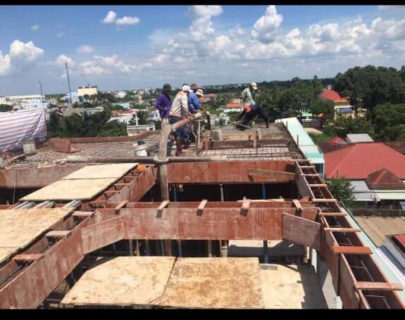 Công trình xây dựng nhà anh Nguyên tại Quận 2 hiện đang trong giai đoạn thi công sàn lầu 1.