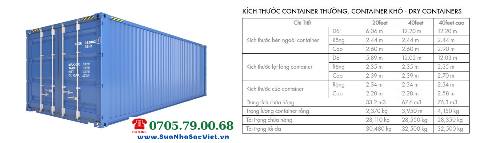 KÍCH THƯỚC CONTAINER