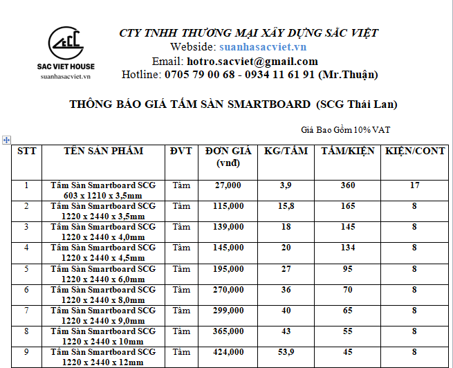 CÁC SẢN PHẨM CÔNG TY SẮC VIỆT - CHÚNG TÔI PHÂN PHỐI LÀ SẢN PHẨM TẤM XI MĂNG SMARTBOARD (SCG THÁI LAN) CAM KẾT CHÍNH HÃNG 100% Quý Khách Cần Tư Vấn - Chúng Tôi Luôn Sẵn Sàng (Hoàn toàn Miễn phí). Quý khách Lưu số Hotline Khi cần gọi: 0705 79 00 68