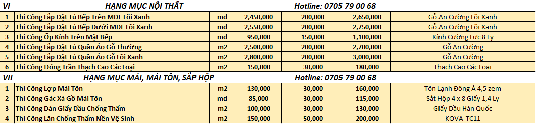 Bước 2: Dự trù kinh phí làm bảng báo giá sửa chữa nhà chi tiết.
