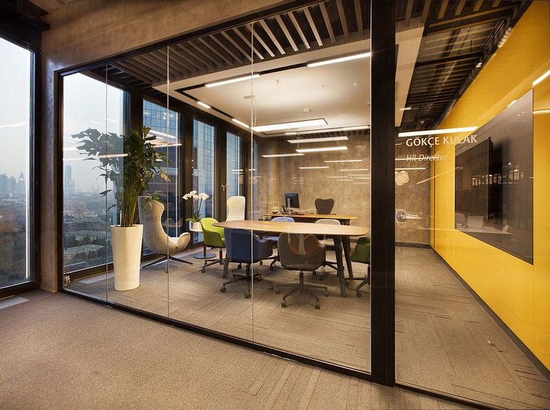 Kiểu thiết kế này vừa đảm bảo tính riêng tư, không ảnh hưởng đến không gian làm việc và người bên ngoài không thể quan sát được không gian bên trong. Đó cũng là sáng kiến hay áp dụng cho các thiết kế nội thất văn phòng nhỏ hẹp như hiện nay.