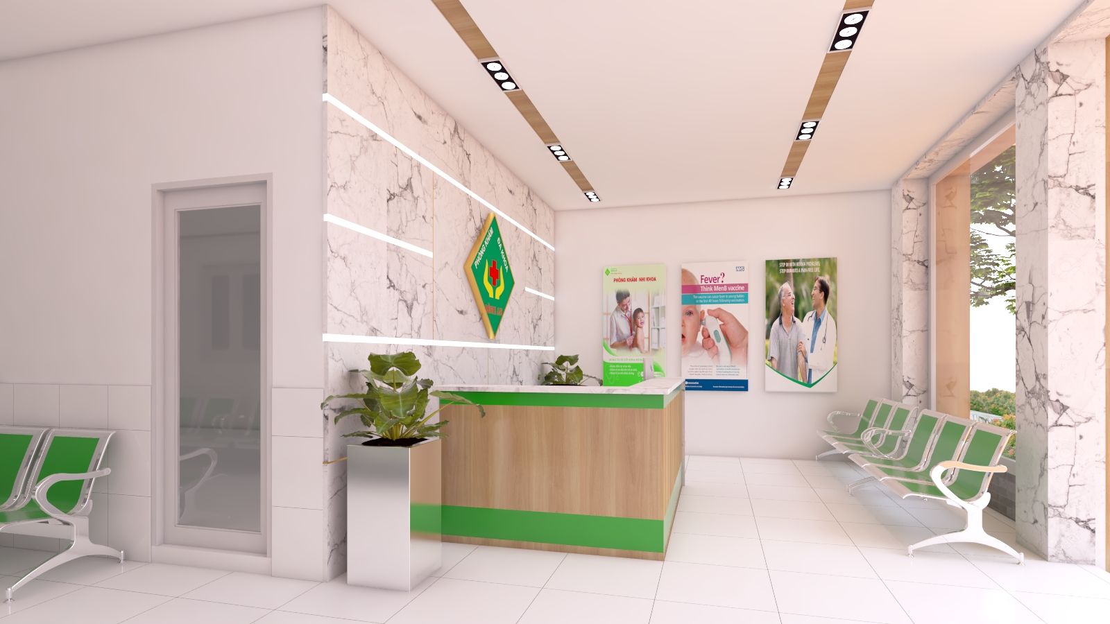 Không gian bên trong là phòng khám, phía bên ngoài là bàn chờ dành cho khách hàng. Ánh sáng màu sắc ấm áp, kết hợp trang trí cây xanh bên ngoài giúp không gian trở nên nổi bật và thân thiện hơn. Hành lang đi lại rộng rãi và thông thoáng, không bị gò bó hay bí bách cũng như không ảnh hưởng đến không gian làm việc bên cạnh.