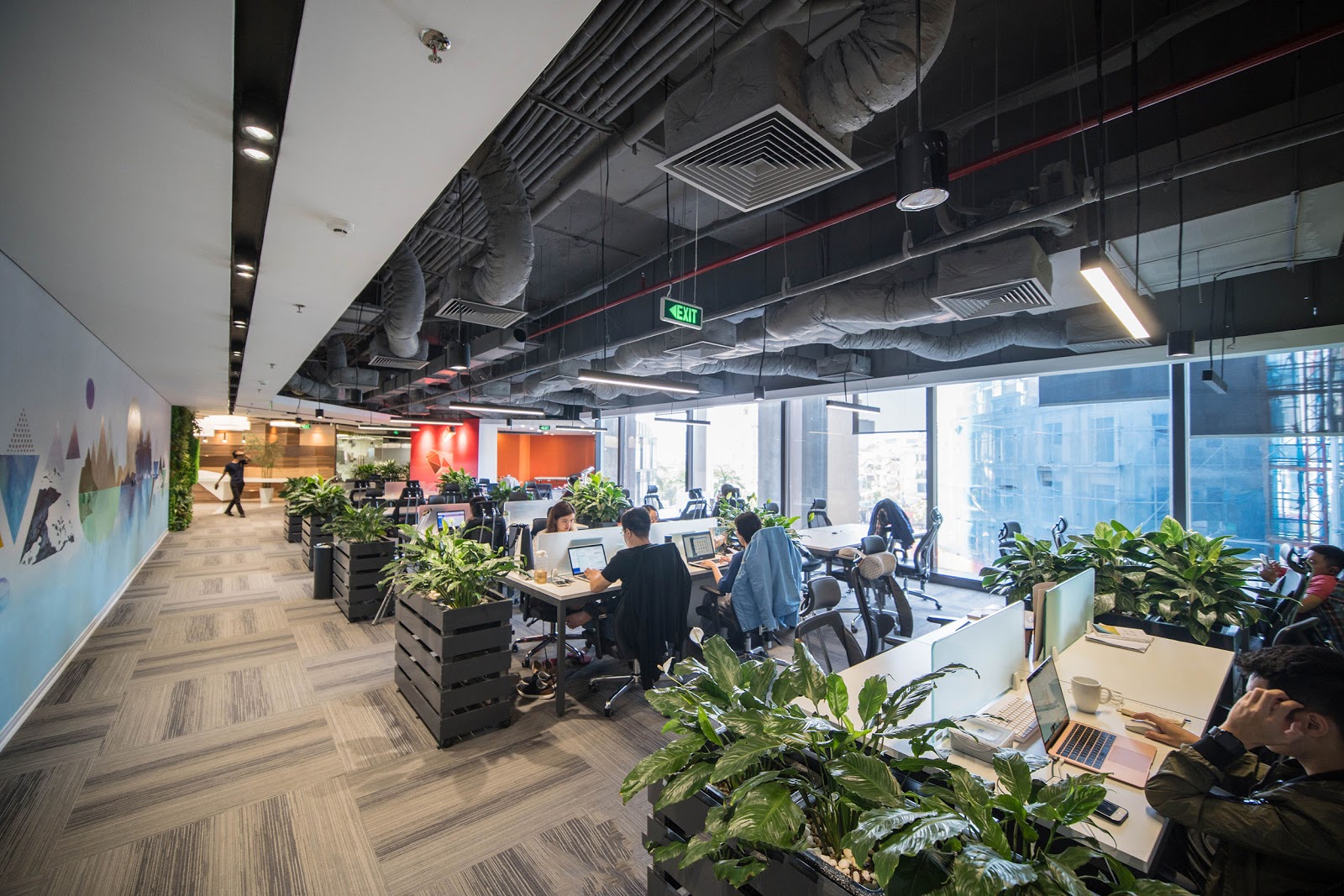 Cây xanh trang trí trong văn phòng làm việc tạo không gian trong lành, thoải mái và dễ chịu. Ánh sáng được bố trí hài hòa tạo hiệu ứng bắt mắt, đồng thời đảm bảo không gian làm việc cho nhân viên.