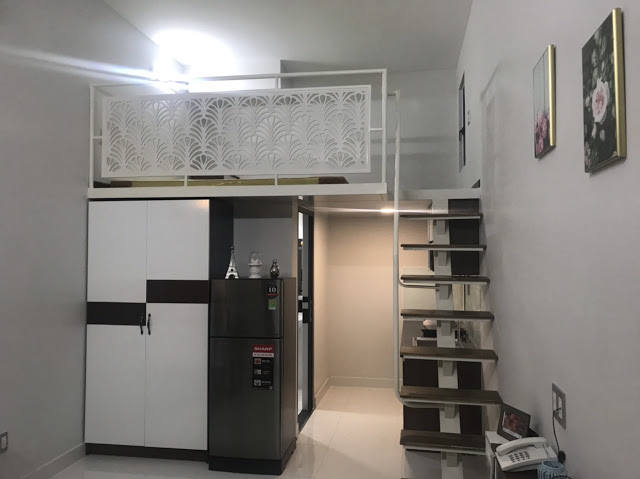 • Phòng có gác lửng: là mẫu phòng trọ có gác xép đặt ở vị trí phía trên bên trong phòng nhằm tăng diện tích sử dụng và tính thẩm mỹ cho không gian.
